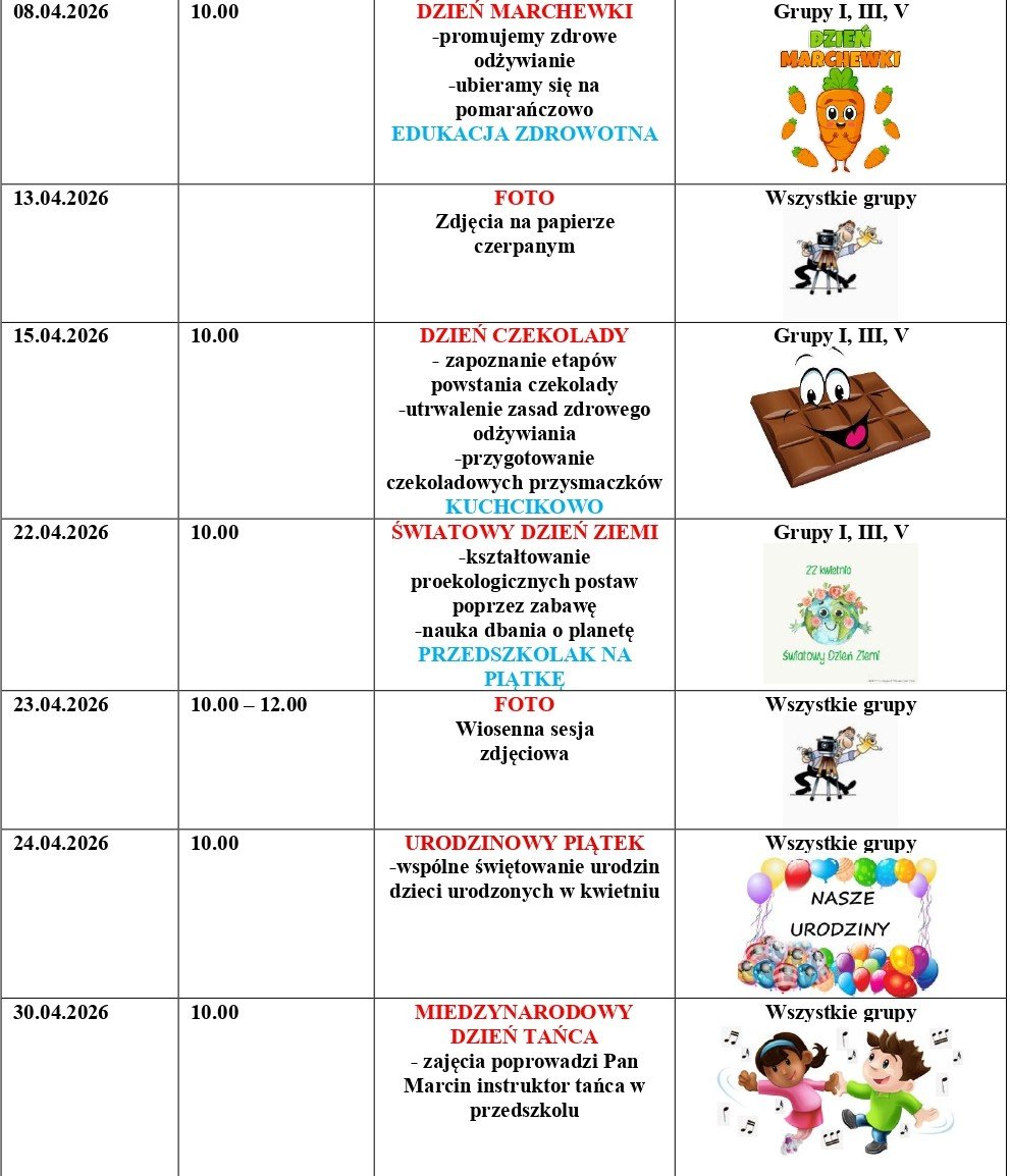 Wydarzenia Strona główna | Wydarzenia Kwiecień 2026 Marzec 2026 Luty 2026 Styczeń 2026 Grudzień 2025 Listopad 2025 Październik 2025 Wrzesień 2025 Metoda Projektu Wyjścia i wycieczki Konkurs plastyczny